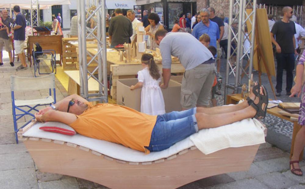 La rinfrancante sdraio “marina”, progettata da un architetto, è solo uno dei tanti prodotti artigiani messi in luce in occasione della tradizionale vetrina dell'associazione di categoria, che quest'anno presenta una ventina di espositori dislocati tra piazza Garibaldi e via Jacopo Da Ponte e suddivisi in quattro aree tematiche: fashion, casa, green e alimentare.