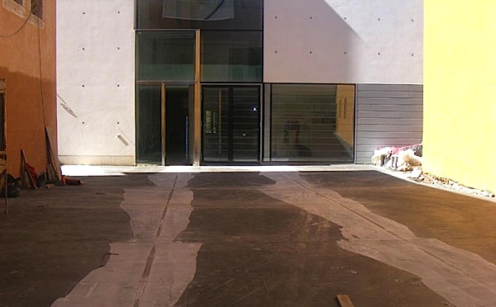 Il nuovo cortile della Cittadella della Giustizia di Bassano, "gettato" ieri (foto Alessandro Tich)