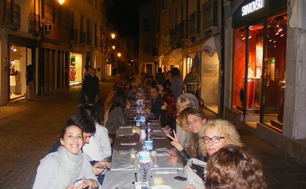 In centro storico a Bassano la prima “Cena di via Roma”: evento conviviale on the road inventato e organizzato da tre negozianti ed esercenti per aggregare residenti, commercianti e operatori della via