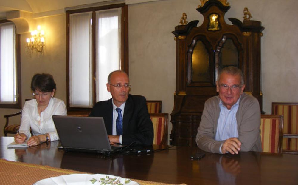 Il dirigente comunale Francesco Benacchio e l'assessore Dino Boesso alla conferenza stampa sul tema della Tares (foto Alessandro Tich)