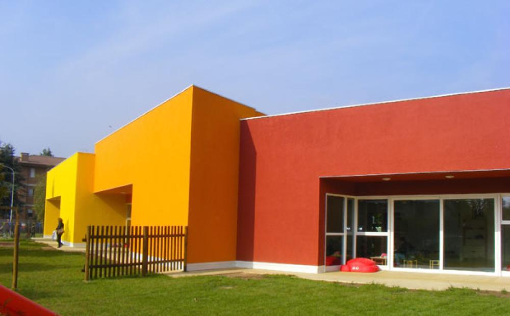 Sarà per questo che nel quartiere che fa degli “United Colors” l'elemento centrale della convivenza quotidiana, anche il nuovo Centro per l'Infanzia è multicolore: tre blocchi funzionali che all'esterno sono dipinti di rosso, arancione e giallo.