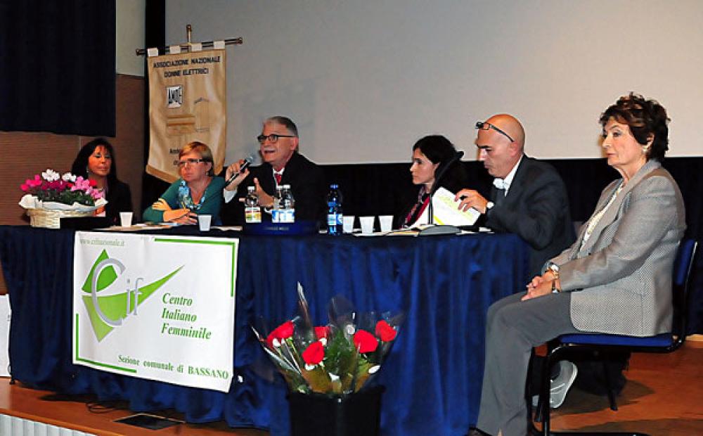 Sala gremita, alla Martinovich, per l’incontro organizzato dal Cif (Centro Italiano Femminile), Ande (Associazione Nazionale Donne Elettrici) e Spazio Donna e fortemente voluto da Maria Nives Stevan intitolato “Emergenza donna”. Segno che il tema è sentito dalla cittadinanza che ha risposto all’invito con l’attenzione dovuta al richiamo tonale di una sirena che un’emergenza di fatto non potrebbe dichiarare: il problema della violenza psicologica, fisica e sessuale sulle donne ha radici molto lontane nel tempo, l’urlo si protrae da secoli, come ha ricordato in apertura del convegno lo psichiatra Franco Garonna citando alcuni passi di Lisistrata, la celebre commedia di Aristofane, un testo immortale studiato e spesso oggetto di drammatizzazione in tante scuole – nel classico greco, l’eroina ateniese, con le altre donne della città, proclamò uno sciopero del sesso per fermare la guerra in atto ma soprattutto riuscì a fare rete, e quindi a dare forza a un’azione civile.