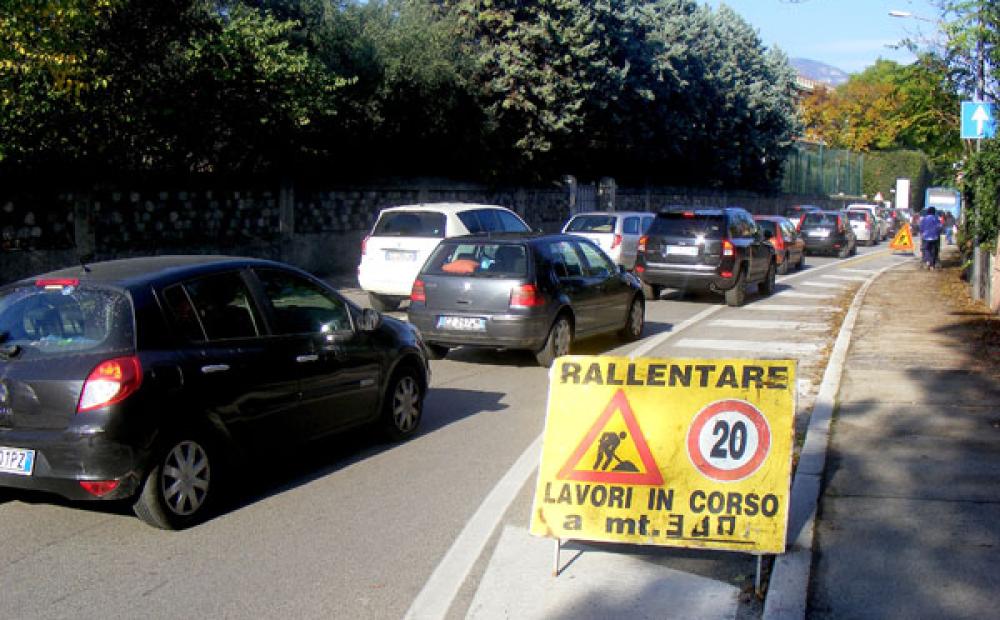 Tutta colpa dei lavori per la posa della rete del gas metano in via Parolini (committente Italgas Spa), eseguiti dalla ditta Betoncat Srl, che prevedono - con “ordinanza 49856 del 2/9/2013” - il restringimento a una sola corsia della carreggiata della principale via di scorrimento da sud verso il centro storico, nel tratto interessato dagli scavi, per permettere alle macchine operatrici di eseguire la posa delle infrastrutture.