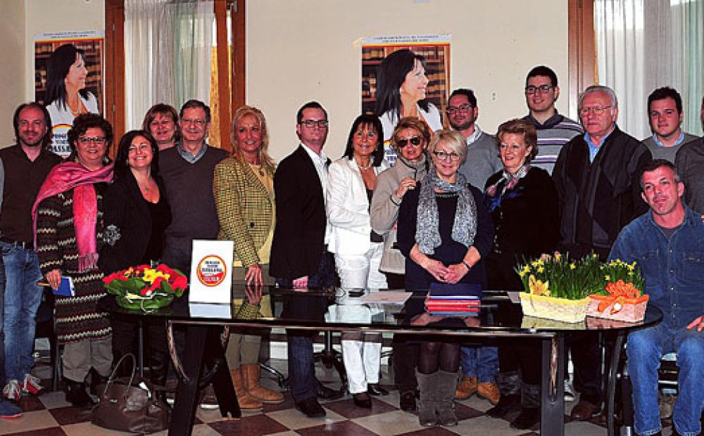 Il candidato sindaco di Bassano Maria Nives Stevan con i candidati della sua lista (foto Roberto Bosca)