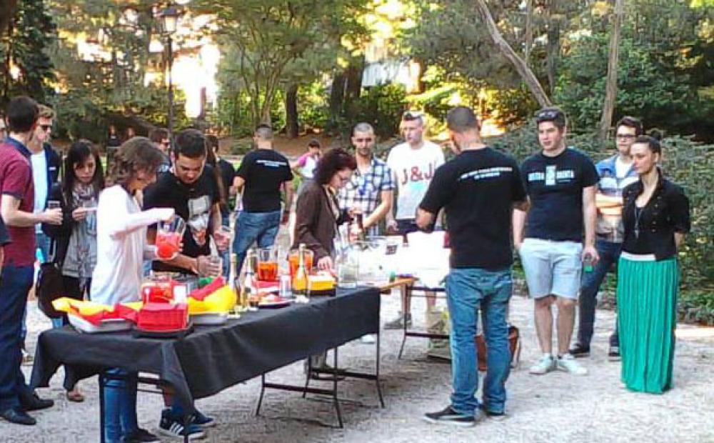 Esponenti dell'associazione, con la maglia scura con le scritte, all'incontro con i giovani promosso da Federica Finco ai Giardini Parolini (foto tratta dalla pagina facebook di Federica Finco)