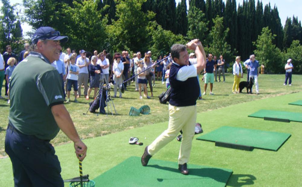 Cimatti non taglia neppure il nastro, onore delegato al grande ospite della giornata: il pluricampione e leggenda del golf professionistico Costantino Rocca.