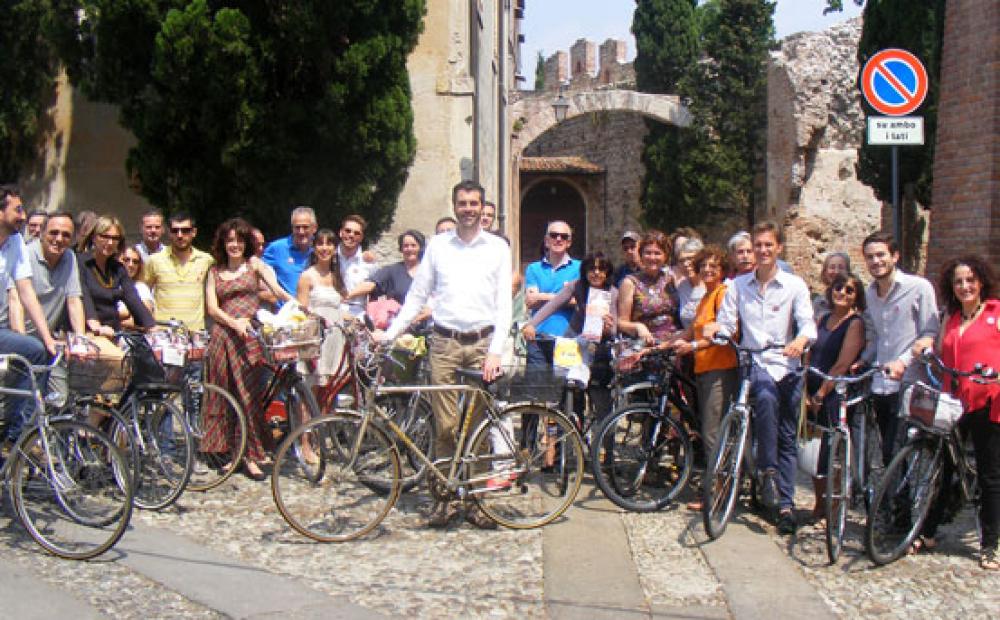 Arrivano quasi tutti in bicicletta candidati e sostenitori per l'ultima conferenza stampa di Riccardo Poletto, candidato sindaco della coalizione di centrosinistra (Partito Democratico, Bassano per Tutti, PiùBassano), prima del ballottaggio di domenica 8 giugno. E non a caso. Come non è casuale la scelta del luogo di convocazione dell'incontro coi giornalisti: e cioè piazza Castello, il piazzale interno del Castello degli Ezzelini dove sono ubicati il Teatro dell'Ortazzo "Tito Gobbi" per gli spettacoli all'aperto, la chiesa di Santa Maria in Colle ma anche l'Ufficio Tecnico e l'Ufficio Urbanistica del Comune.