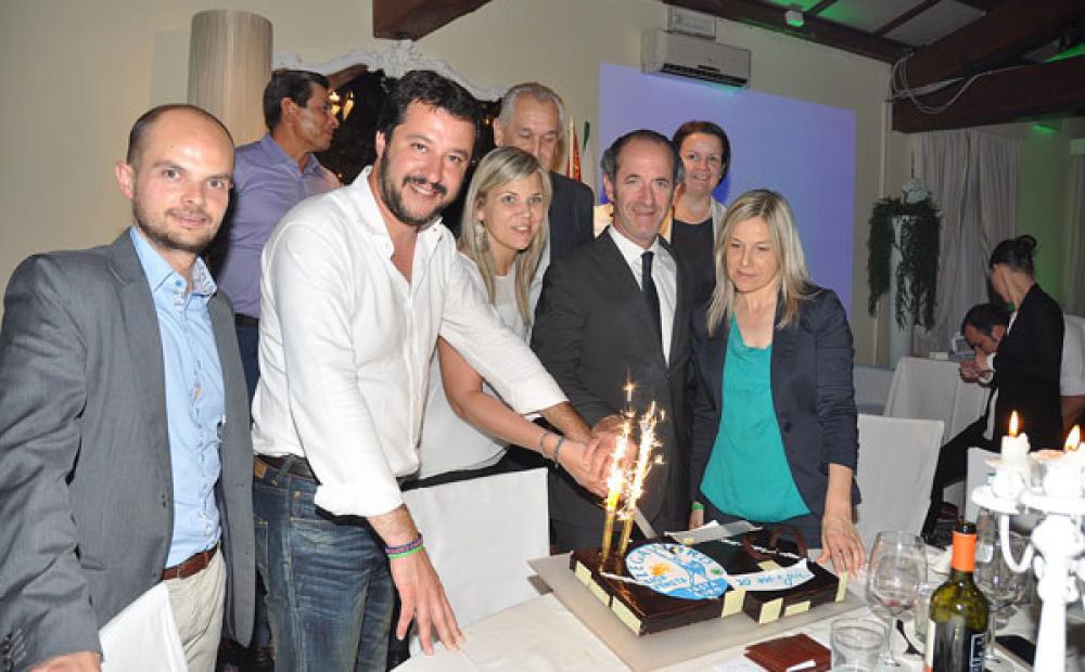 Salvini, Zaia, Lanzarin & C. tagliano la torta per i "Vent'anni e più" della Lega Nord a Rosà