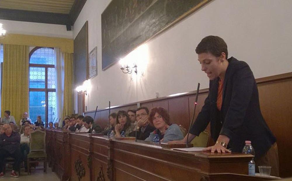 i banchi della maggioranza nel primo consiglio comunale. In primo piano, in piedi, il capogruppo PD Elisa Cavalli (da facebook)