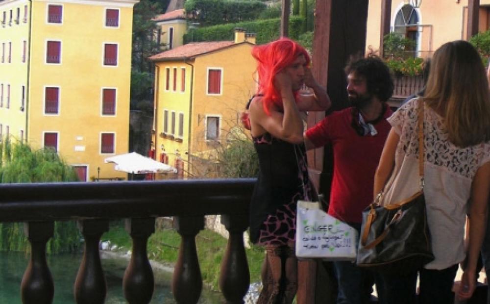 Un "personaggio" di un addio al celibato sul Ponte degli Alpini (foto: archivio Bassanonet)
