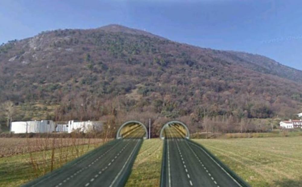 Proiezione minimalista del traforo della superstrada in via Carlessi a Romano d'Ezzelino (immagine: No Nuova Valsugana/facebook)