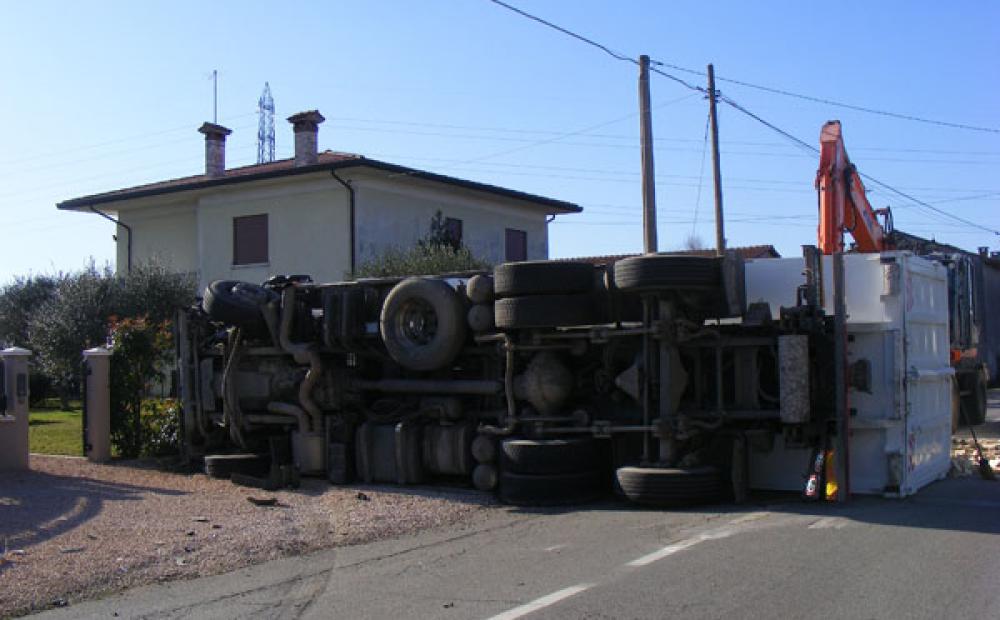 Nell'impatto, l'autovettura ha urtato l'albero della ruota anteriore sinistra del mezzo pesante. Per “effetto leva” la ruota si è alzata e l'autoarticolato si è sollevato, roteando e rovesciandosi di traverso alla strada davanti all'entrata di una villetta al civico 44, dove abitano le famiglie Dalle Nogare e Comunello, danneggiando parte della recinzione dell'abitazione.