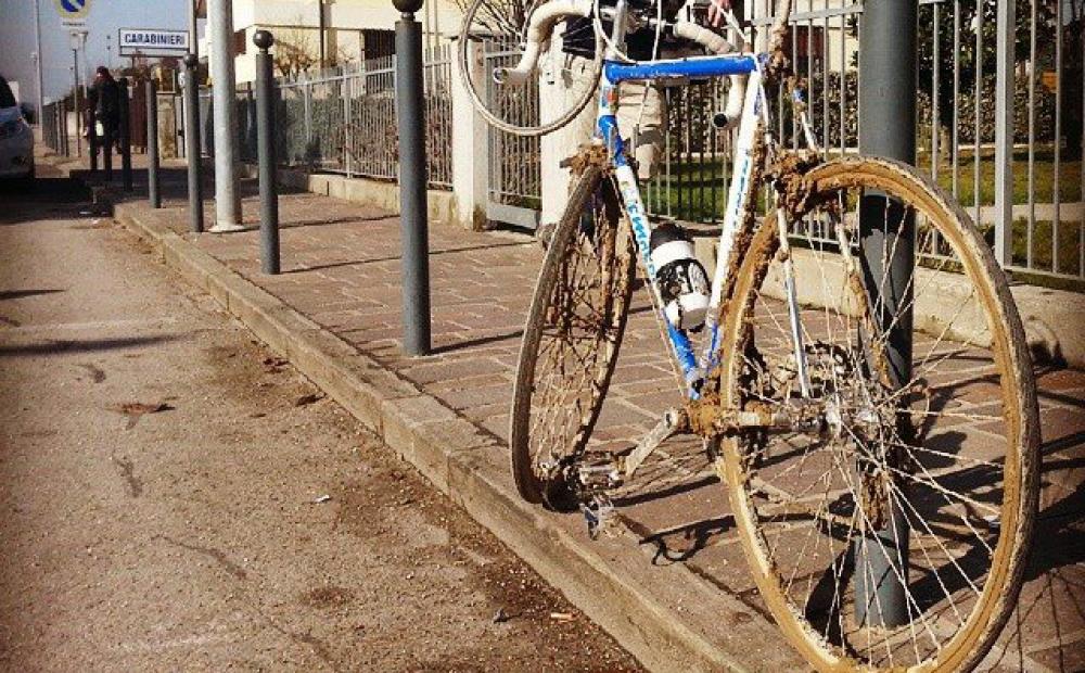 La bicicletta di Chenet "parcheggiata" vicino alla caserma dei Carabinieri di Camisano Vicentino (da facebook)