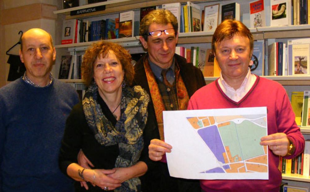 I soci A.S.E.V. (da sin.: Alessandro Mursia, Gabriele Klein, Antonio Cinel e Francesco Celotto) con la mappa urbanistica dell'area interessata: la zona Prod 63 è indicata in viola (foto Alessandro Tich)