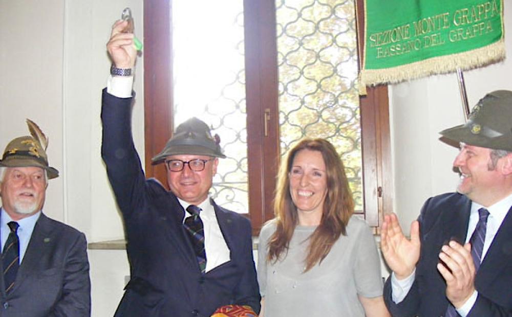 Habemus Chiavi! Il presidente ANA Montegrappa Giuseppe Rugolo col presidente nazionale ANA Sebastiano Favero e gli assessori regionali Elena Donazzan e Roberto Ciambetti (foto Alessandro Tich)