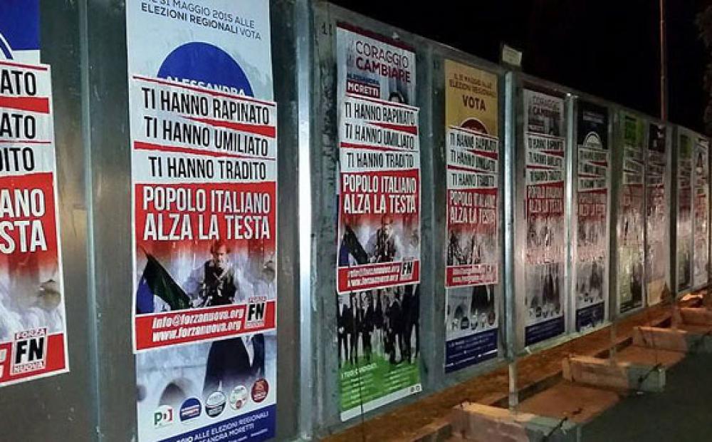 Blitz nella notte dei militanti di Forza Nuova che in alcune città del Veneto - tra cui Bassano del Grappa e alcuni Comuni del circondario - hanno ricoperto i pannelli elettorali con manifesti di Forza Nuova, sovrapponendoli ai manifesti regolarmente affissi negli spazi assegnati alle liste e ai candidati alle elezioni regionali.