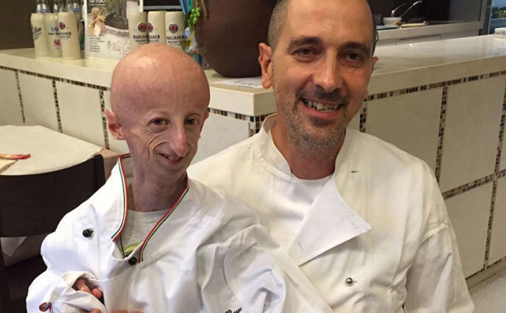 Forte l'emozione sia di Sammy che di Federico che ha voluto così ringraziare il testimonial dell'A.I.Pro.Sa.B. (Associazione Italiana Progeria Sammy Basso) onlus per la grande opera di sensibilizzazione che sta facendo a favore delle persone meno fortunate di noi.
