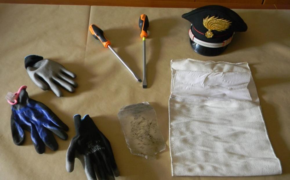Nel corso della perquisizione ai due arrestati è stato rinvenuto il kit del perfetto scassinatore: due cacciaviti di grosse dimensioni, guanti, un pezzo di plastica trasparente (utilizzato per aprire la serratura della porta), uno strumento metallico di effrazione e una panciera di lana. Tutto il materiale è stato sottoposto a sequestro.