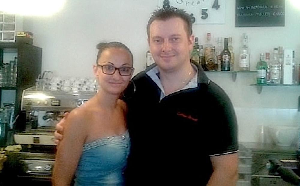 Gianluca Trintinaglia con la moglie Tiziana dietro al bancone del suo bar (foto Alessandro Tich)