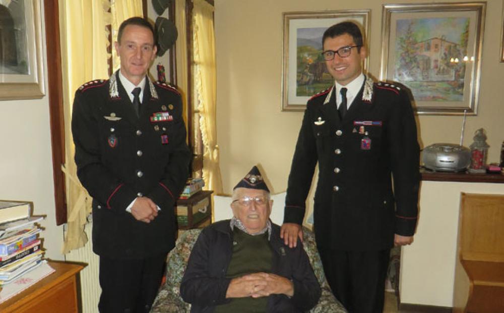 E' davvero una gran pellaccia Giovanni Quarisa, classe 1909, residente a Bassano, appuntato dei Carabinieri in congedo. E martedì scorso 25 agosto - in occasione del suo 106° compleanno - ha ricevuto gli auguri dell'Arma dei Carabinieri, rappresentata dal comandante provinciale di Vicenza col. Giuseppe Zirone e dal comandante della Compagnia di Bassano del Grappa cap. Mario Rocco che si sono recati in visita all'ultracentenario collega nella sua casa di vacanza a Costalunga, sul Grappa.