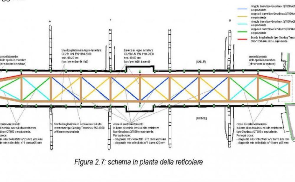 "Schema in pianta della reticolare" (dalla relazione illustrativa del Progetto Preliminare di restauro e consolidamento statico del Ponte degli Alpini)