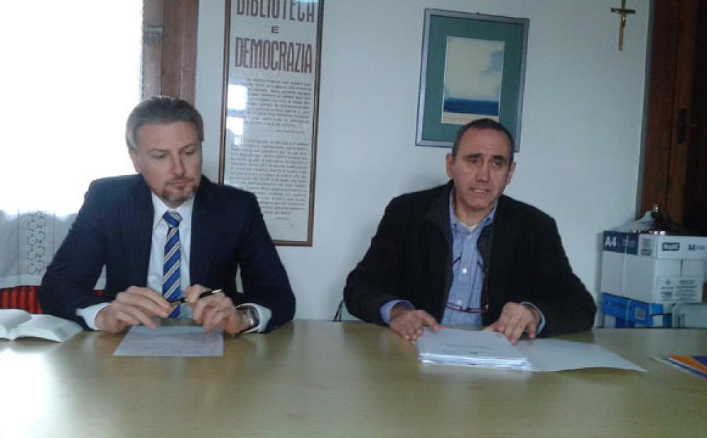 L'avvocato Filippo Piovan e il presidente dell'Unione Nazionale Consumatori Veneto Antonio Tognoni in conferenza stampa (foto: Alessandro Tich)