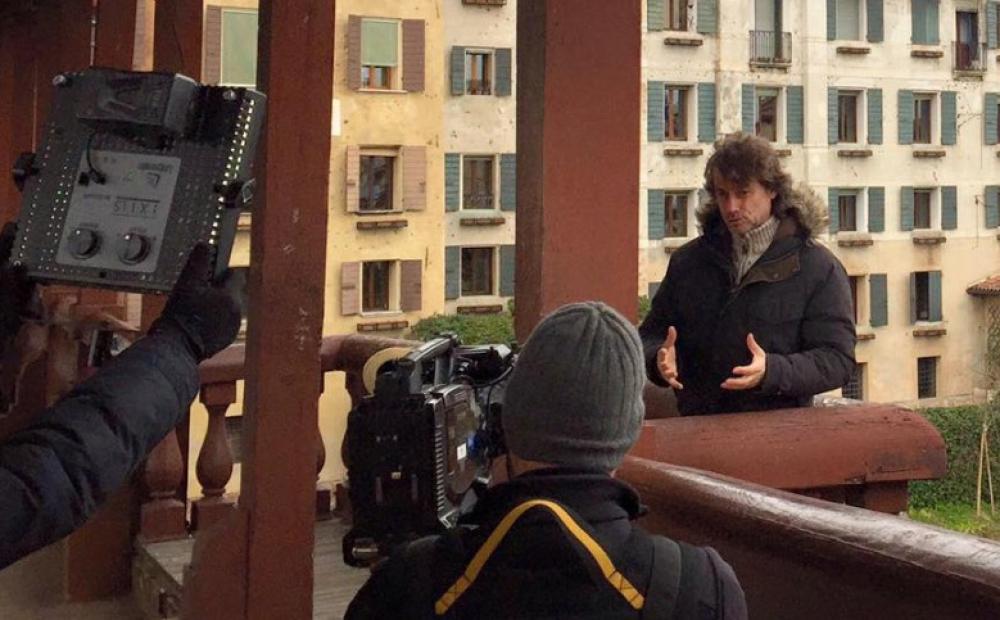 Alberto Angela nuovamente a Bassano per registrare un servizio della sua trasmissione dedicato al Ponte Vecchio. Nonostante la pioggia battente. E il celebre conduttore, per l'assessore Cunico, è un “supereroe”