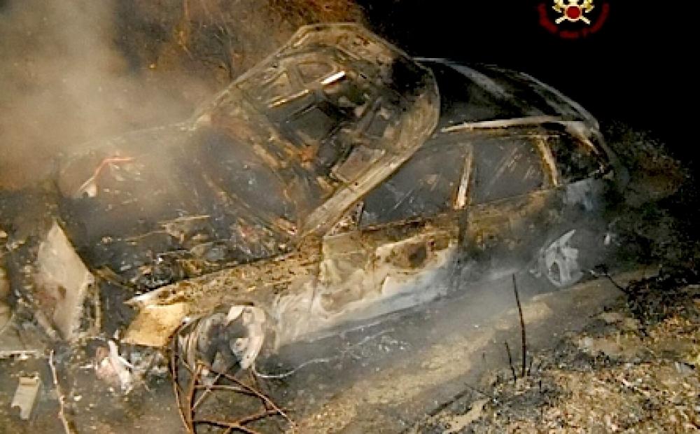 All’arrivo dei pompieri, l’auto era ormai completamente avvolta dalle fiamme.