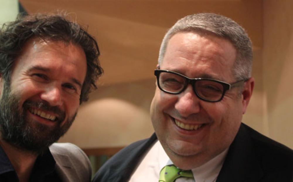 Carlo Cracco e Roberto Astuni in una foto sorridente. Oggi Astuni, per la denuncia allo chef-star vicentino, non ha motivo di ridere