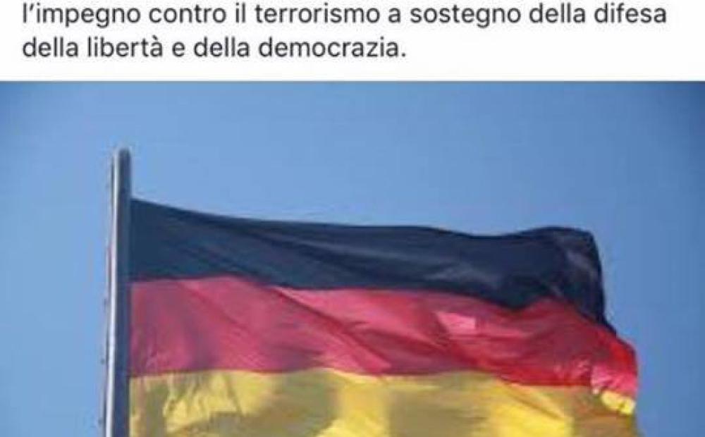 Un dettaglio del post con la bandiera tedesca, poi rimosso e ripubblicato