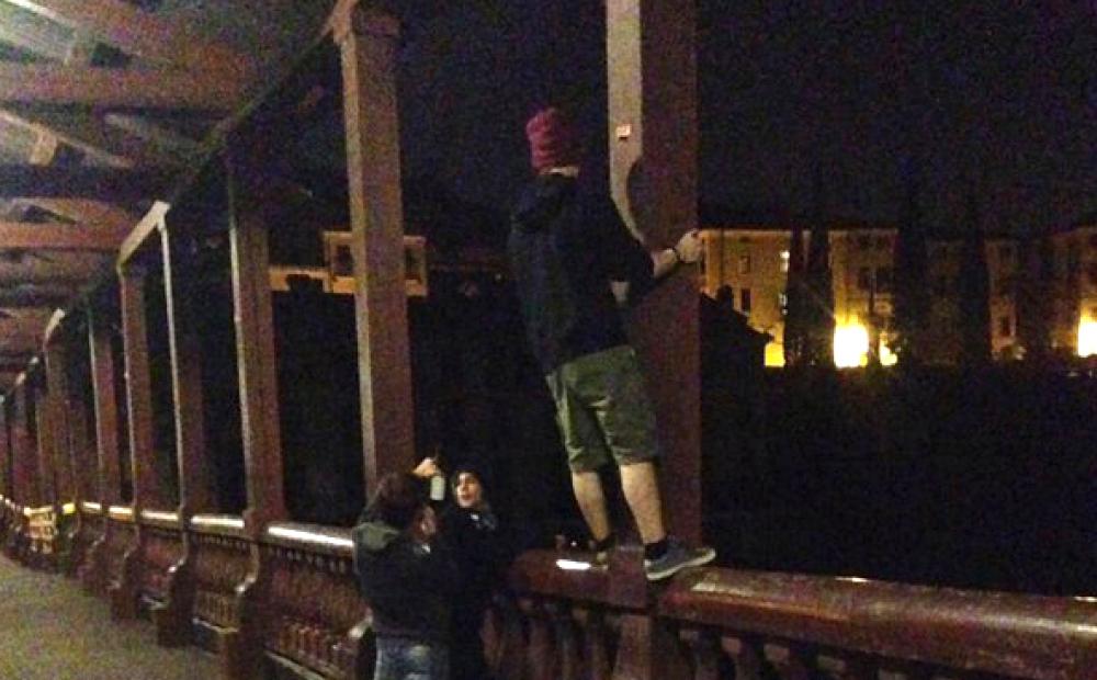 Il profilo Twitter risulta appartenere ad un utente di Portogruaro, in provincia di Venezia, e la didascalia della foto recita “Trash portogruarese in quel di Bassano”. Non è dato sapere se l'arrampicatore social sia salito sul pericoloso bordo sopra il fiume con il lucido intento di dimostrare la sua incommensurabile temerarietà oppure - come accade a molti frequentatori della zona del Ponte Vecchio - sotto i fumi dell'alcol.