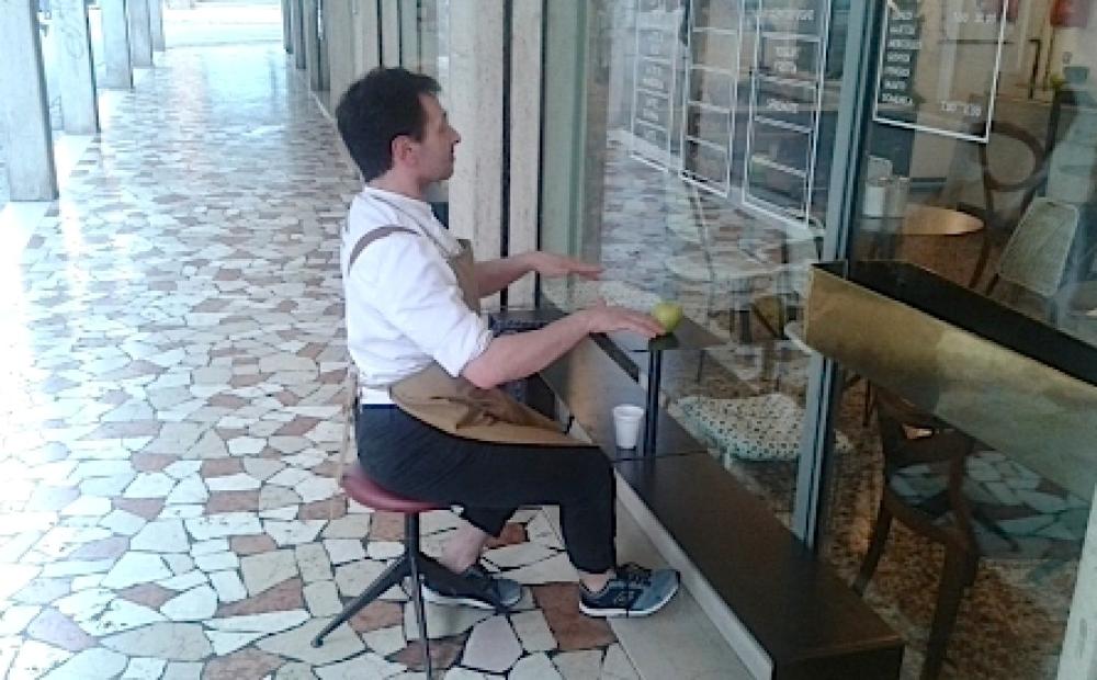 “Il maestro Ferro - mi dice Parise -, dopo aver saputo che a suo tempo volevo far suonare tre pianoforti in fila in via Marinali, mi ha contattato e mi ha proposto il suo progetto, a cui io subito ho detto di sì. Uno dei pianoforti doveva essere messo qui, vicino alla vetrina del mio locale. Poi, tre settimane fa, mi ha chiamato e mi ha detto: “Sono state bocciate due postazioni, una in piazzetta Guadagnin e l'altra è la tua. Ma non so perché”. E allora ho cercato di informarmi.”