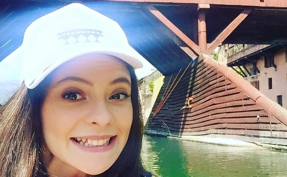 Francesca Michielin davanti al Ponte di Bassano con la canoa di Ilario Baggio (fonte immagine: Francesca Michielin/Facebook)