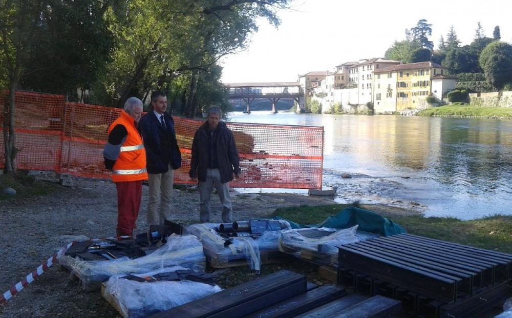 Partiti i lavori di somma urgenza per la difesa del Ponte di Bassano dalle brentane invernali. Travi e traversi di acciaio collocati dai sub della Idra di Venezia. Assieme ai rocciatori di San Martino di Castrozza, saranno poi tesi i tiranti