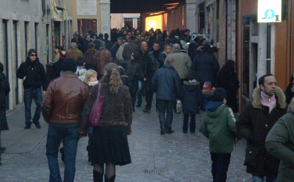 E' bastata la prima domenica di sole con il clima mite: nel pomeriggio il centro storico di Bassano è stato preso d'assalto dalla consueta folla di visitatori.