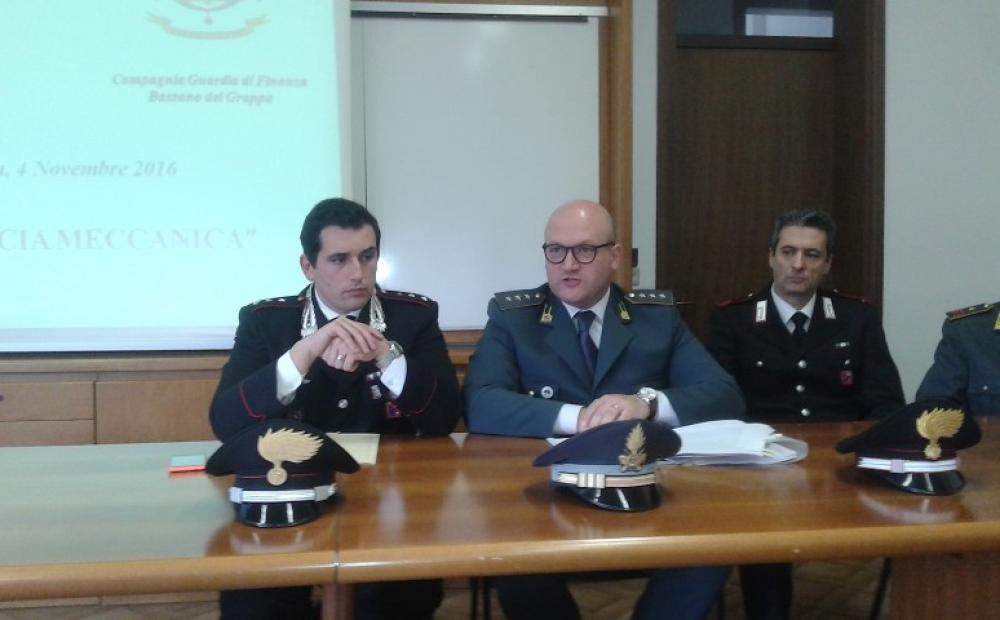La conferenza stampa congiunta di Carabinieri e Guardia di Finanza a Bassano (foto Alessandro Tich)