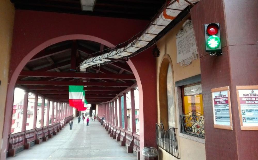 L'installazione e l'attivazione dell'impianto semaforico ad entrambi gli ingressi est ed ovest del Ponte degli Alpini sono state effettuate a seguito dell'ordinanza del sindaco dello scorso 19 luglio, la quale impone la chiusura del transito pedonale sul Ponte in caso di criticità idraulica. Ciò potrà avvenire nel momento in cui venisse superata la soglia di 480 mc/sec, corrispondente alla quota di 2,76 metri misurati alla stazione idrometrica di Barziza. Si tratta del valore al quale riferirsi per la chiusura al passaggio pedonale sul Ponte: in caso di necessità, pertanto, scatterà il semaforo rosso con relativo divieto di transito.