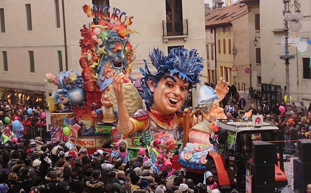 Una delle passate edizioni della sfilata dei carri allegorici del Carnevale di Bassano (archivio Bassanonet)