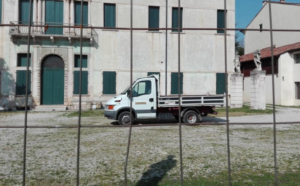 Nel cortile di Palazzo Bonaguro, dove sarà allestita una delle due basi di logistica dei mezzi e di deposito dei materiali, la pace regna ancora sovrana. Ma il cortile non è vuoto: a “presidiare” l'area vi è infatti un camioncino della Vardanega. Niente di più, ma appare quasi come un segnale di delimitazione del territorio e di occupazione dello stesso, come la bandiera conficcata sul ghiaccio dai primi esploratori per la conquista del Polo (non museale).