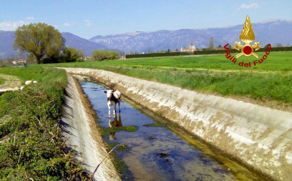 Mucca si imbizzarrisce e scappa mentre viene scaricata da un camion in zona San Lazzaro a Bassano del Grappa, finendo in un canale di irrigazione. Impaurita, percorre quasi cinque chilometri prima di essere recuperata dai Vigili del Fuoco a Rosà.