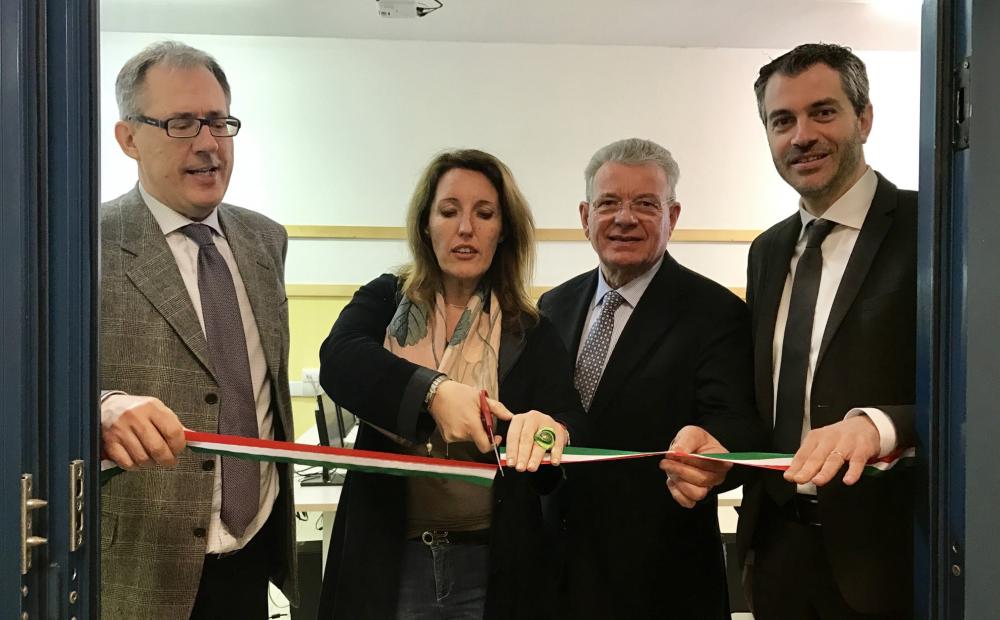 Il preside dello "Scotton" Mario Maniotti, l'assessore Elena Donazzan, l'imprenditore Giovanni Panni e il sindaco Riccardo Poletto al taglio del nastro