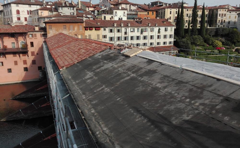 Cima Coppi: è iniziato dal vertice, con la rimozione delle tegole del tetto, l'intervento di ripristino e consolidamento statico del Ponte di Bassano.