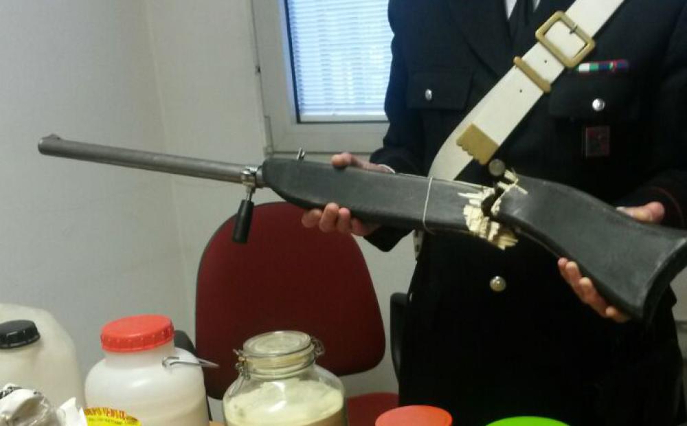 A tale scopo veniva effettuata dai militari dell’Arma una perquisizione nell’abitazione del soggetto per la ricerca di armi, munizioni e materiale esplodente. Tale atto si concludeva positivamente, dal momento che i Carabinieri hanno rinvenuto un fucile “clandestino” di fabbricazione artigianale del C.M.F. , oltre a polveri ed altro materiale non detenibile senza autorizzazione di polizia.