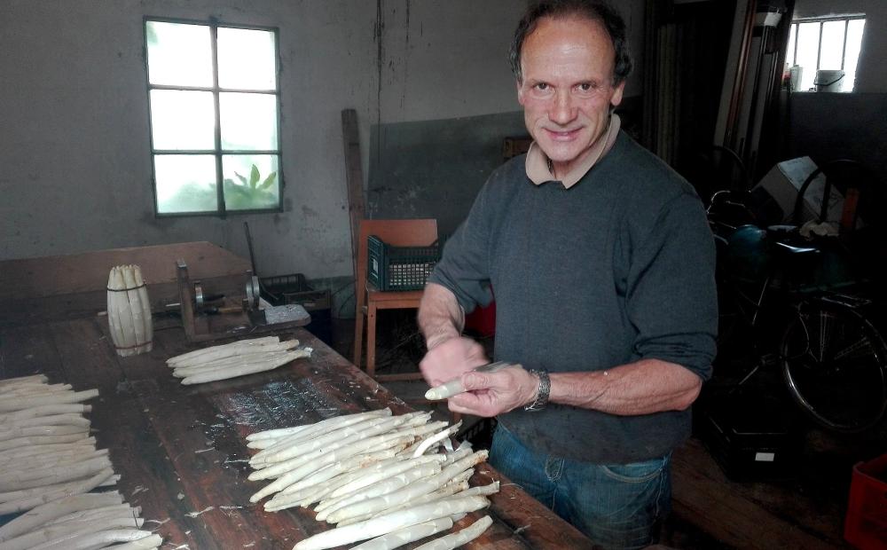Gli asparagi, infatti, oltre a promuoverli anche li coltiva, per passione, sottolineando con orgoglio di essere “l'unico produttore sotto il campanile di San Zeno”.