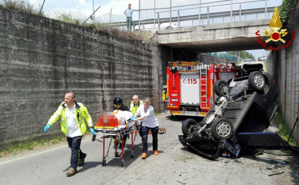 Pauroso incidente stradale a Rosà. Alle ore 12.30, i vigili del fuoco sono intervenuti in via Monsignor Caron per un’autovettura Lancia Y10 caduta dal sovrappasso della tangenziale sulla strada sottostante: un ferito. Coinvolto nel sinistro, provocato probabilmente da un malore al volante, un 63enne di Romano d'Ezzelino che mentre percorreva la tangenziale in direzione nord ha perso il controllo della vettura, uscendo dalla carreggiata, precipitando nella sottostante via Monsignor Caron e andando a sbattere contro un muro, finendo con le ruote all'aria. I pompieri di Bassano del Grappa hanno messo in sicurezza l’auto rovesciata e dopo averla stabilizzata con dei puntelli telescopici, hanno estratto il conducente rimasto incastrato nell’abitacolo. Il ferito è stato preso in cura dal personale del suem 118 e trasportato d'urgenza con l'elisoccorso all'ospedale di Treviso. Le sue condizioni sono molto gravi. Sul posto i carabinieri di Rosà per ricostruire la dinamica dell'incidente. Le operazioni di soccorso sono terminate dopo circa un’ora.