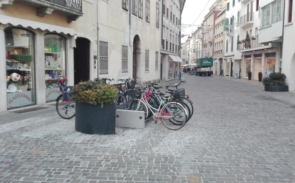 Davanti all'entrata del negozio, e di fianco allo stallo per le biciclette, è stata collocata una fioriera: in posizione longitudinale, in modo da impedire comunque il parcheggio selvaggio delle auto ma non il passaggio delle carrozzine. La soluzione ideale, talmente semplice che poteva essere pensata sin da subito. E così regnano nuovamente la pace e la concordia, nella ex mezza Abbey Road de noialtri.