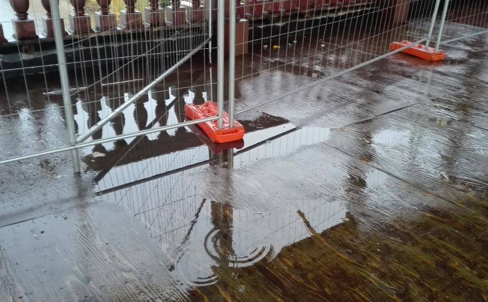 Non è solo un modo di dire riguardo all'attuale situazione in cui versa il monumento, abbandonato a se stesso per il periodo di sospensione forzata del cantiere di restauro, ma anche il reale stato delle cose verificatesi nella piovosa giornata di oggi.