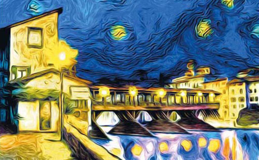 Così, molto probabilmente, Vincent Van Gogh avrebbe ritratto il monumento simbolo della nostra città se ne avesse avuto l'occasione. O almeno ne è convinto il Consorzio Turistico Vicenzaè, che ha dato alle stampe un'originale cartolina nella quale il panorama notturno del Ponte viene riprodotto - col supporto delle odierne tecnologie grafiche che tutto rendono possibile - nello stile del grande pittore olandese.