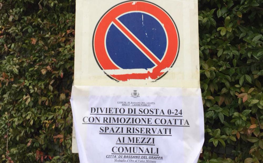 La fantomatica storia dei due cartelli improvvisamente apparsi questa mattina e altrettanto improvvisamente rimossi al parcheggio Prato 2 a Bassano