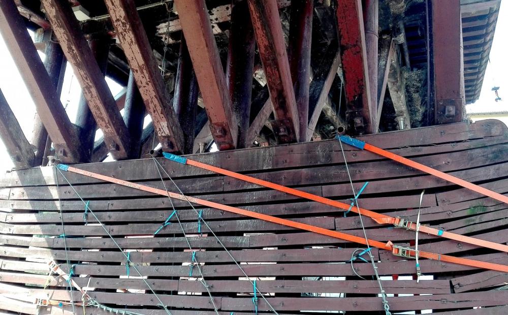Tra i vari addebiti contestati dalla Direzione Lavori all'impresa appaltatrice vi è infatti anche il mancato approvvigionamento, al presente, della fornitura di legno prevista dal progetto esecutivo per la sostituzione delle colonne usurate delle pile.